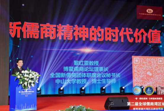 2023年12月17日下午,在深圳舉行的“第二屆全球儒商灣區論壇”上,全國新儒商團體聯席會議秘書長、中山大學黎紅雷教授,應邀發表主題演講:《新儒商精神的時代價值》。
