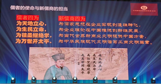 在演講的最后,黎紅雷教授慷慨激昂地指出,北宋儒學家張載曾經提出著名的“四為句”:“為天地立心,為生民立命,為往圣繼絕學,為萬世開太平”,成為一代又一代儒者的宗旨和使命。當代新儒商在堅定遵循這一天下儒者共同的宗旨和使命的基礎上,結合自身的特點及其面對的時代課題,提出“新四為句”作為自己的目標:“為儒家思想在企業實現創造性轉化,為企業理論在中國推進創新性發展,為當代世界新商業文明提供中國的方案,為中華民族現代文明譜寫工商文明的篇章!”